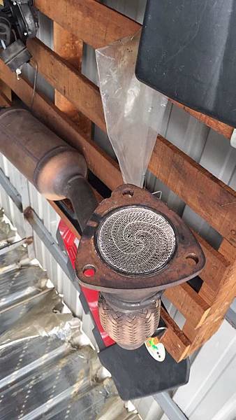 下面就是排氣管分流器久了就會在高溫之下變成這樣當然也就會堵住排氣